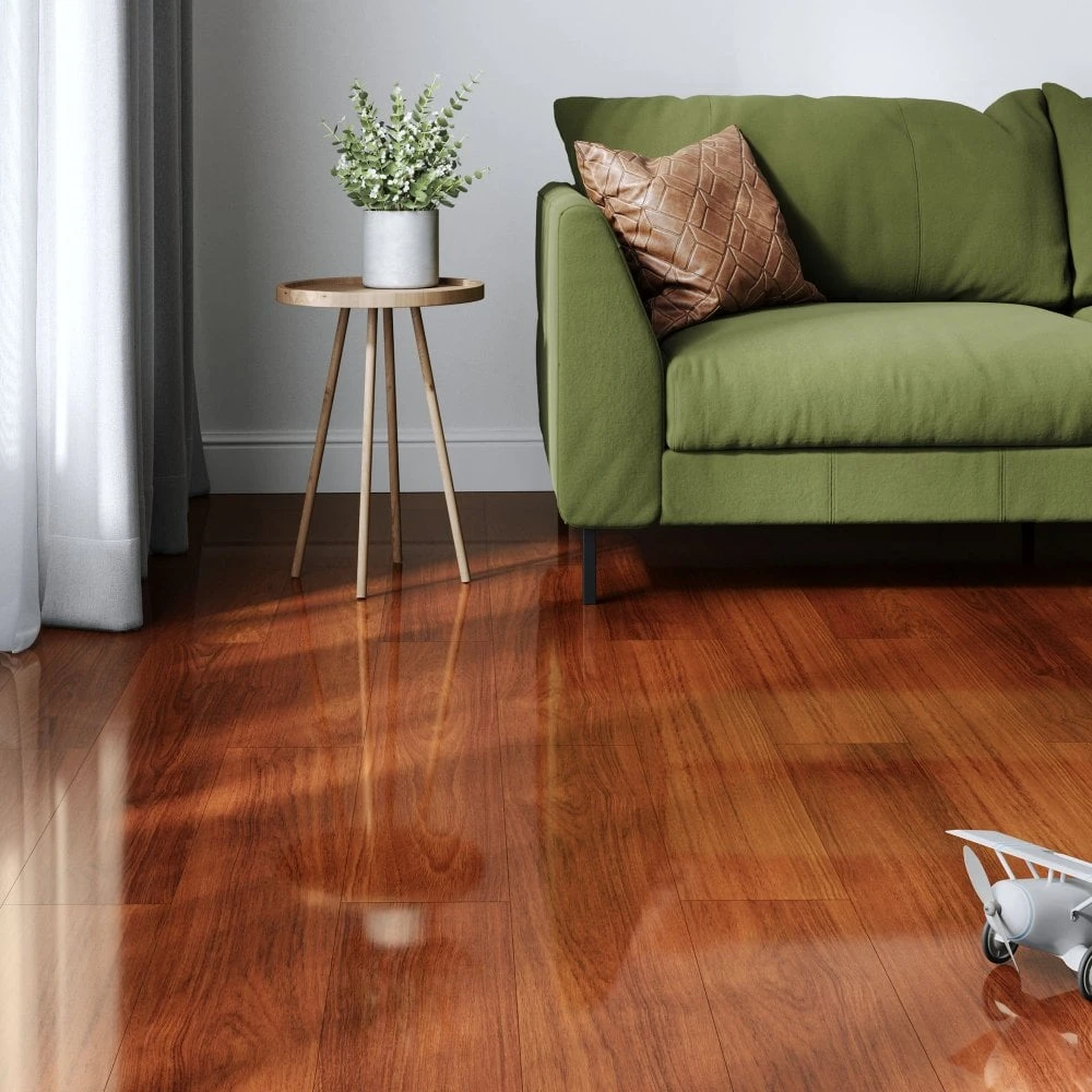 The High Gloss 4V 8mm Plateau Merbau High Gloss Laminate Flooring boasts a stunningly rich copper colour tone that perfectly meshes with the flooring’s sleek high gloss finish. Proving to be a must have for any home thanks to it being entirely waterproof when all its edges are sealed, this high gloss flooring uses the excellent 5G click fitting system & has an AC4 grading meaning it is suitable for use in commercial & residential spaces!